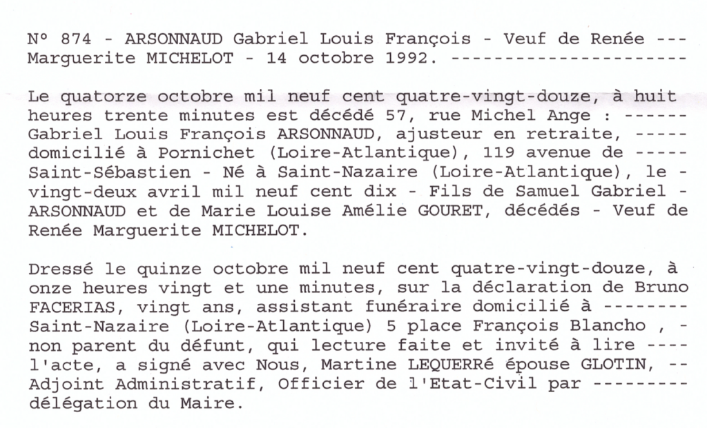 Non classé Source 1992.10.14 D ARSONNAUD Gabriel By Christophe 21 décembre 202521 décembre 2025 0 Comment on Source 1992.10.14 D ARSONNAUD Gabriel 14 octobre 1992Décès de Gabriel Louis François ARSONNAUDSaint-Nazaire (44)